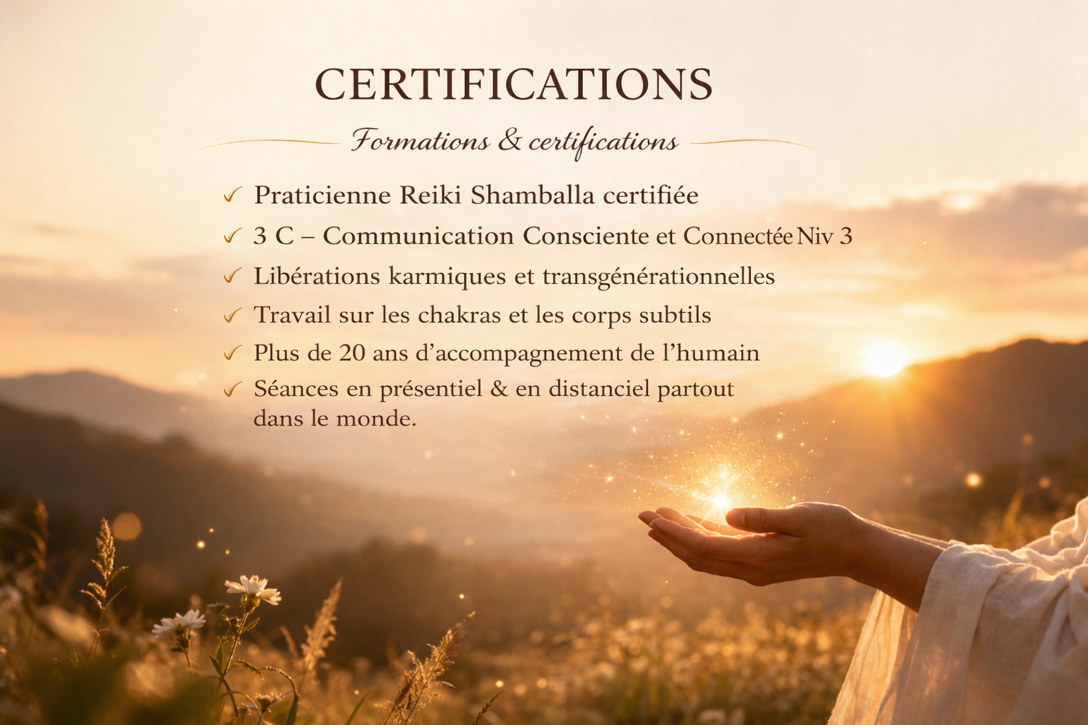 Mon parcours de guérison énergétique a commencé. J’ai reçu des soins, j’ai expérimenté, j’ai appris. Et un jour, c’est devenu une évidence, je ne pouvais plus ignorer cette dimension subtile de l’être humain. Elle m’appelait.