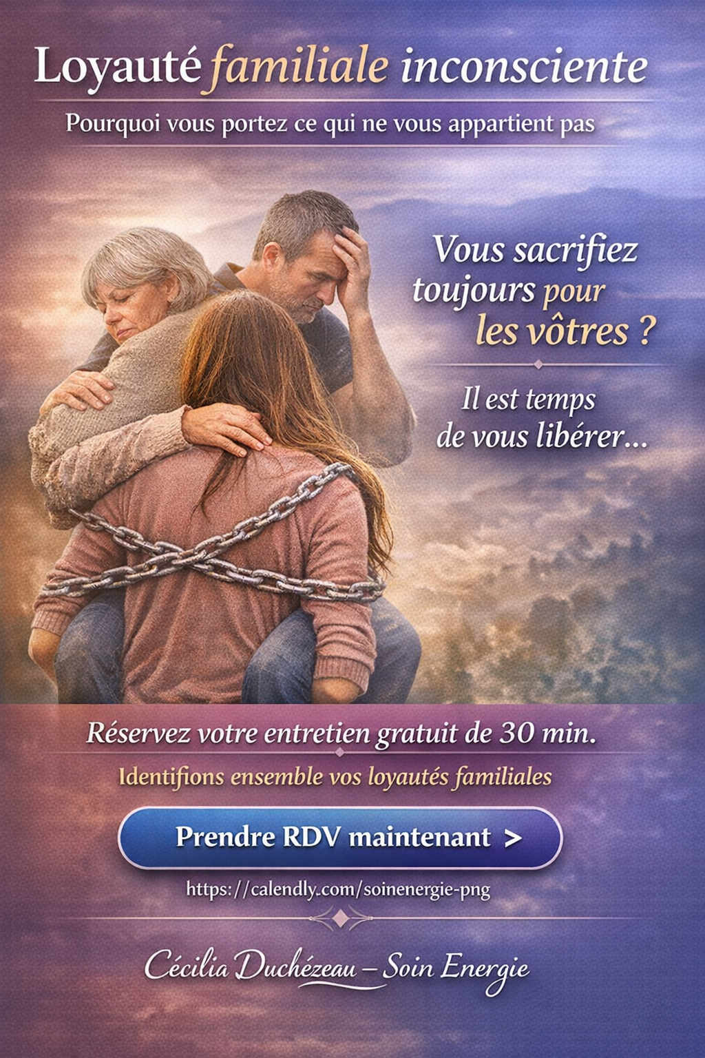 Se libérer d’une loyauté inconsciente, ce n’est pas rejeter votre famille. C’est simplement remettre chaque chose à sa juste place. Vous continuerez d’aimer les vôtres mais vous le ferez librement, sans vous y perdre.